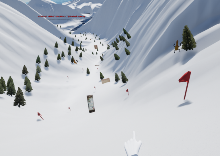 Dovre Kamikaze — Global Game Jam 2019. VR first-person sleigh racer and snowball fighter. Rubber chicken yetis, enemy brats, snowy ravine. WIP demo.
